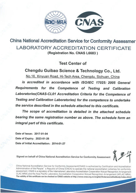| Standard: | ISO/IEC 17025:2005 /CNAS-CL01 |